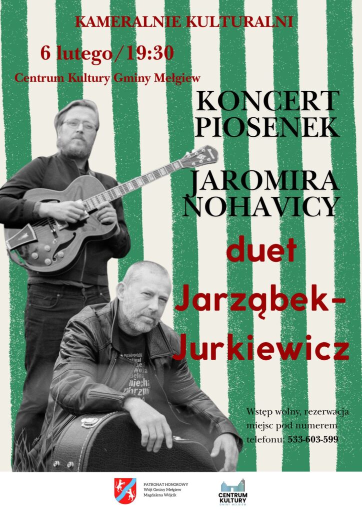Kolejna odsłona wydarzenia „Kameralnie kulturalni” zbliża się wielkimi krokami! Tym razem zapraszamy Państwa w muzyczną podróż poezji Jaromira Nohavicy – czeskiego kompozytora, barda i poety, którego twórczość zyskała dużą popularność nie tylko w Czachach, ale również Słowacji i Polsce. W kameralnej przestrzeni naszego Pałacu usłyszymy utwory Nohavicy w wykonaniu duetu Jarząbek-Jurkiewicz.