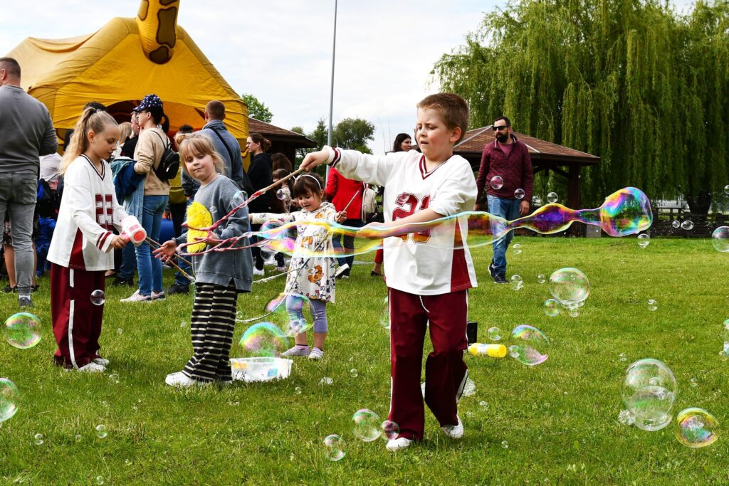 Na najmłodszych czekało mnóstwo zabaw i animacji, kolorowe dmuchańce, które stały się absolutnym hitem dnia, a dla smakoszy – pyszne przekąski i ciasta przygotowane przez Koła Gospodyń Wiejskich. Dużym zainteresowaniem cieszyły się również pokazy i prezentacje wspaniałych wozów strażackich, które udostępnili nam nasi dzielni strażacy.