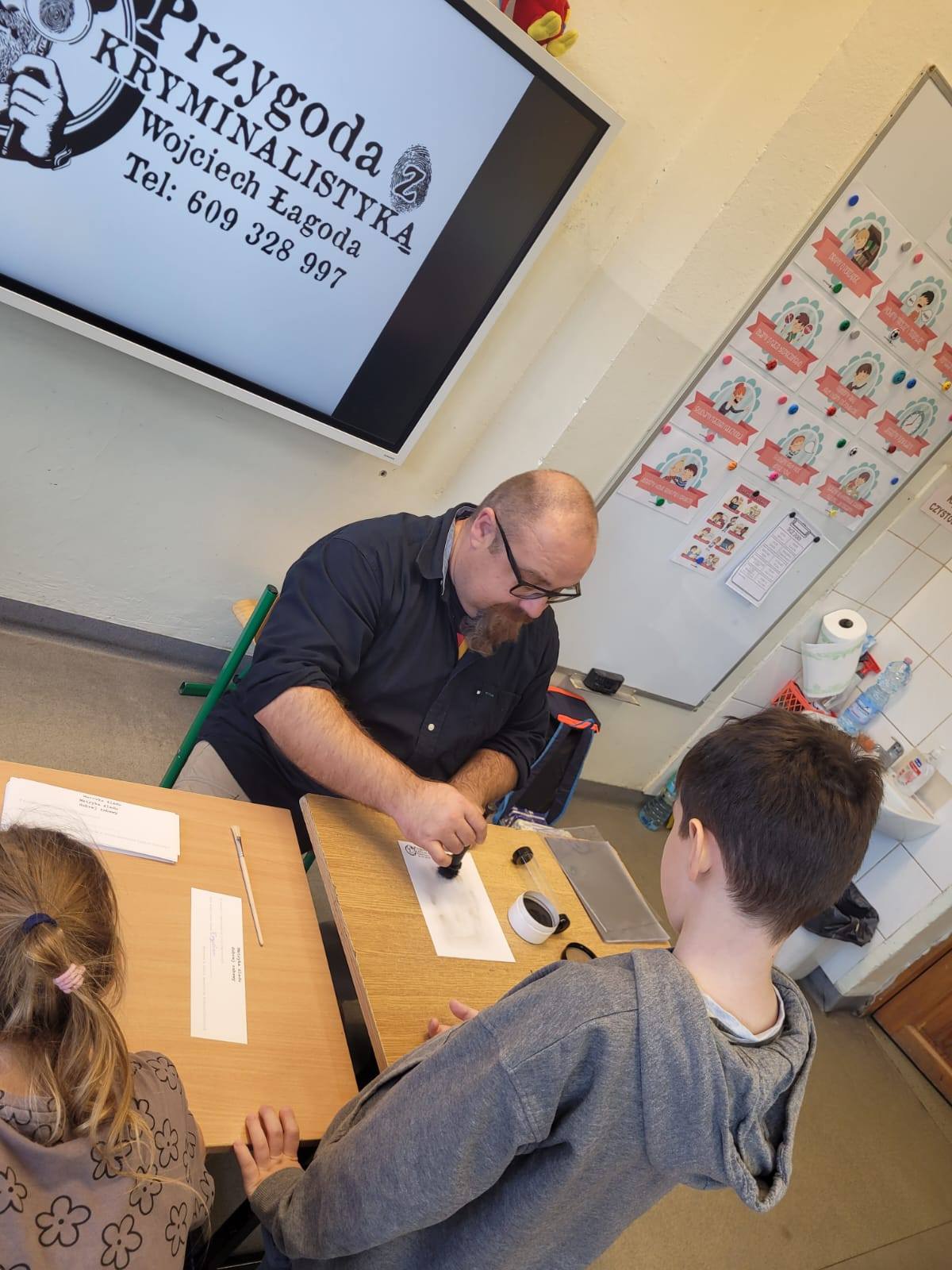 W drugiej części spotkania, podczas 30-minutowych zajęć praktycznych, dzieci wraz z opiekunami będą mogły spróbować swoich sił w roli detektywów – m.in. wykonać własne odciski palców i przekonać się, jak wygląda praca przy zabezpieczaniu śladów.